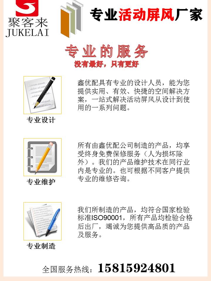 主營(yíng);活動(dòng)屏風(fēng),折疊門(mén),活動(dòng)隔斷,移動(dòng)屏風(fēng),移動(dòng)隔斷,推拉門(mén),中軸門(mén),屏風(fēng),隔斷,玻璃活動(dòng)屏風(fēng),玻璃隔斷,玻璃中軸門(mén),吊趟門(mén)。