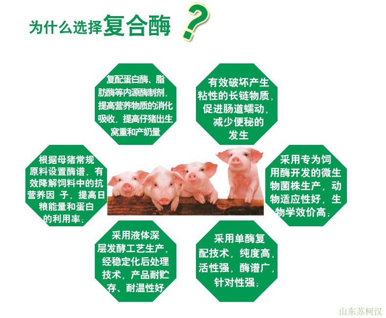 本網頁所展示的有關 山東蘇柯漢生物工程股份有限公司 為你提供的“母豬專用復合酶飼料添加劑酶制劑”其他飼料價格、型號、圖片、廠家等信息。如有需要請撥打電話:13355360729。