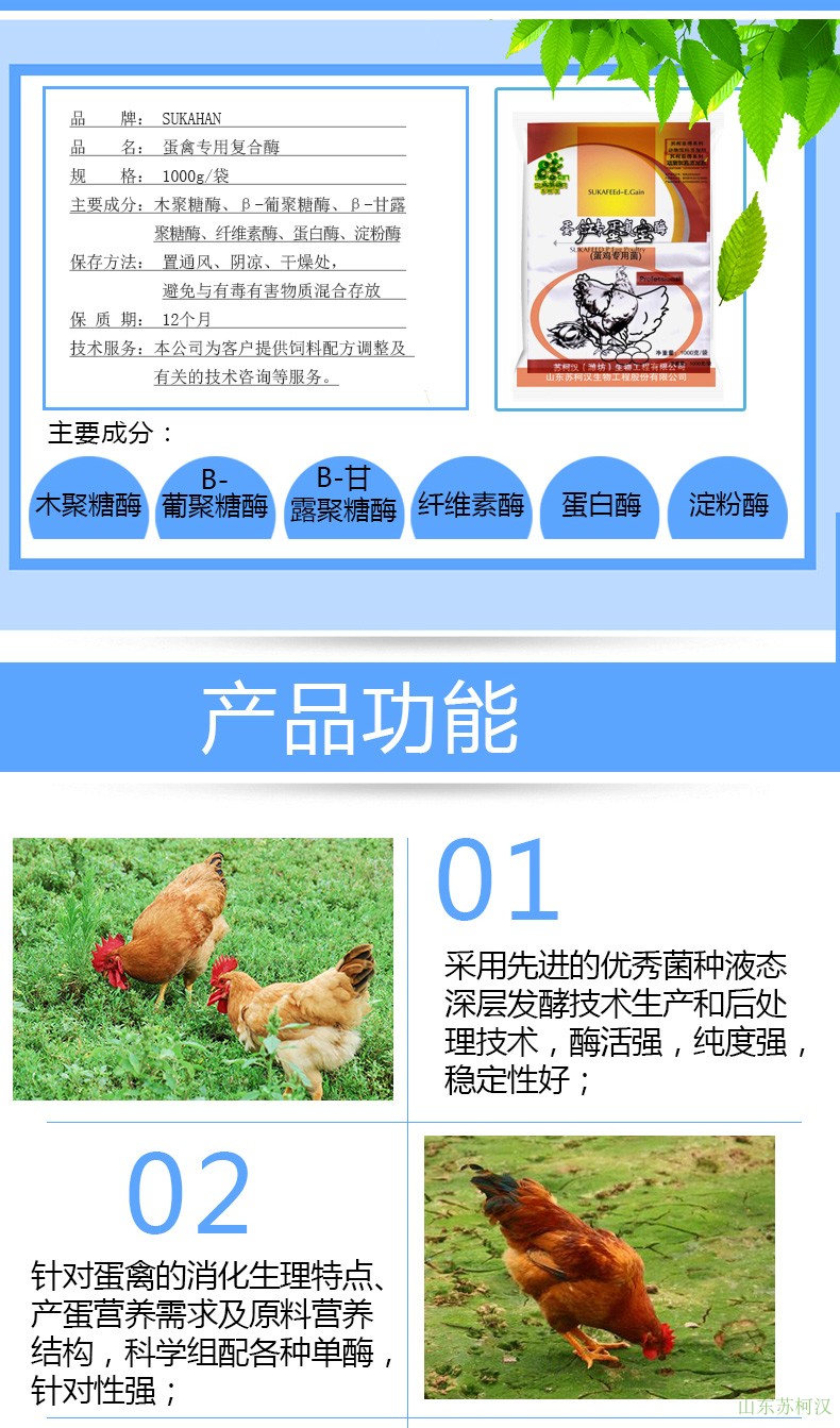 本網頁所展示的有關 山東蘇柯漢生物工程股份有限公司 為你提供的“蛋禽專用復合酶飼普通型料添加劑酶制劑”其他飼料價格、型號、圖片、廠家等信息。如有需要請撥打電話:13355360729。
