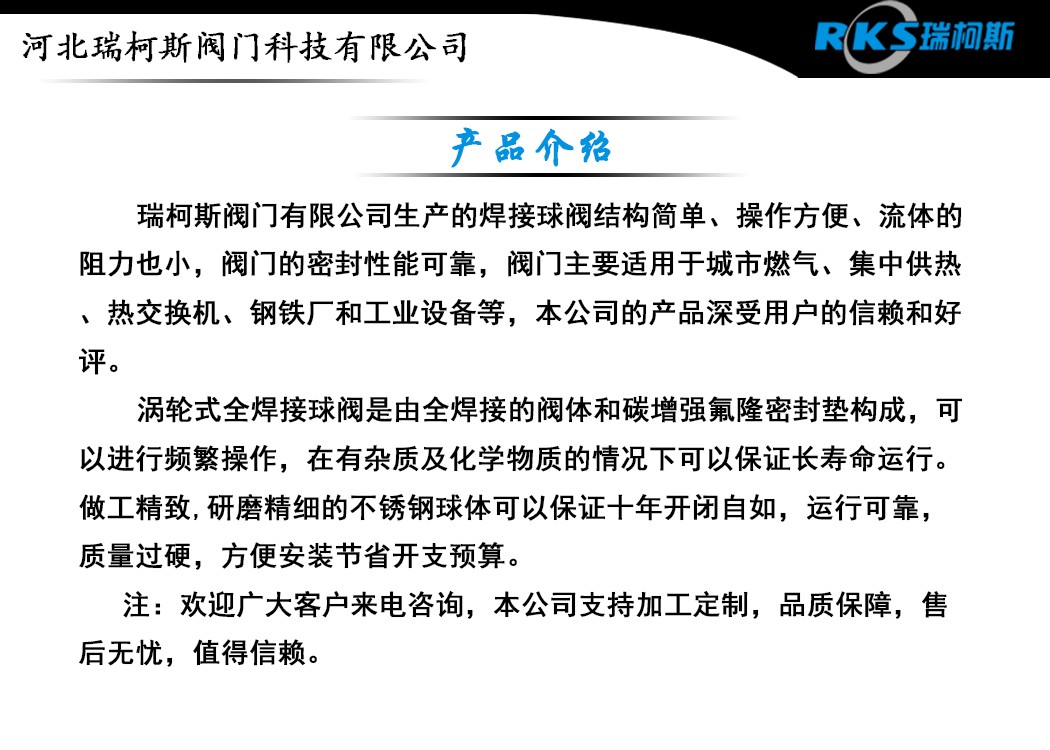 本網頁所展示的有關 河北瑞柯斯閥門科技有限公司 為你提供的“渦輪式全焊接球閥-特點-優勢-批發-瑞柯斯”球閥價格、型號、圖片、廠家等信息。如有需要請撥打電話:8368566。