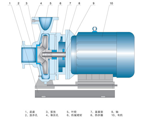 ISW型臥式管道泵啟動(dòng)后,泵軸帶動(dòng)葉輪一起高速旋轉(zhuǎn),迫使預(yù)填充在葉片之間的液體旋轉(zhuǎn)。在慣性離心力的作用下,液體從葉輪中心徑向移動(dòng)到外周。液體在流過葉輪的運(yùn)動(dòng)過程中獲得能量,靜壓能量增加,流速增加。當(dāng)液體離開葉輪并進(jìn)入泵殼時(shí),由于殼內(nèi)流道的逐漸膨脹,液體會(huì)減速,部分動(dòng)能轉(zhuǎn)化為靜壓能,切向流入排放管。ISW型臥式管道泵殼體不僅是收集從葉輪流出的液體的部件,而且還是動(dòng)力傳遞裝置。當(dāng)從葉輪的中心向外周投擲液體時(shí),在葉輪的中心形成低壓區(qū)域,并且由于液體之間的總勢能差而將液體吸入葉輪的中心。依靠葉輪的連續(xù)運(yùn)轉(zhuǎn),液體被連續(xù)地吸入和排出。由ISW型臥式管道泵中的液體獲得的機(jī)械能轉(zhuǎn)化為靜壓能的增加。
