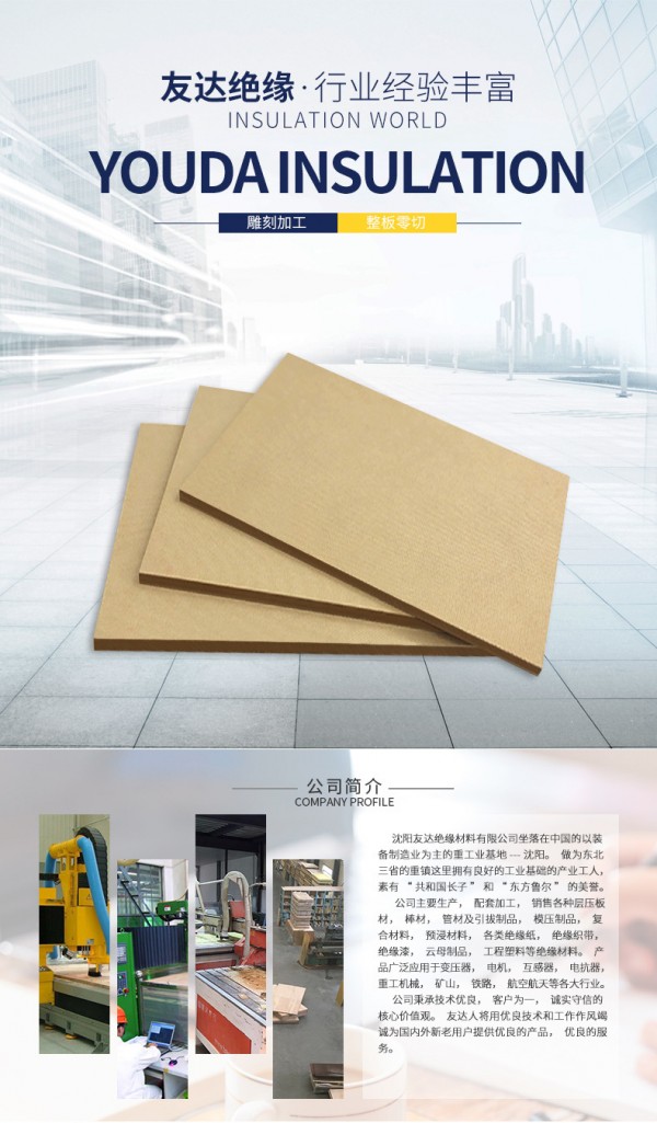 沈陽友達絕緣材料有限公司主要生產,配套加工,銷售各種層壓板材,棒材,管材及引拔制品,模壓制品,復合材料,預浸材料,各類絕緣紙,絕緣織帶,絕緣漆,云母制品,工程塑料等絕緣材料。產品廣泛應用于變壓器,電機,互感器,電抗器,重工機械,礦山,鐵路,航空航天等各大行業。