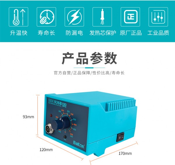 >優(yōu)質(zhì)產(chǎn)品>機(jī)械及行業(yè)設(shè)備>電焊、切割設(shè)備>Bakon白光936B焊臺(tái)恒溫電烙鐵家用維修可調(diào)溫65W焊接 備品配件、工具耗材、行政辦公、勞保用品、儀器設(shè)備、化工用品、非標(biāo)定制、建筑建材