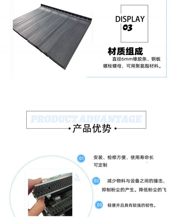 橡膠板,聚氨酯板,緩沖床,緩沖條,防溢裙板,擋塵簾,清掃器,皮帶清掃箱,輸送帶糾偏裝置