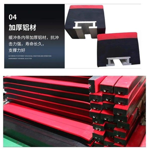 2.、緩沖條耐磨表層是由高分子聚氨酯材料制成,它具有高耐磨性、低摩擦系數和高抗沖擊韌性。